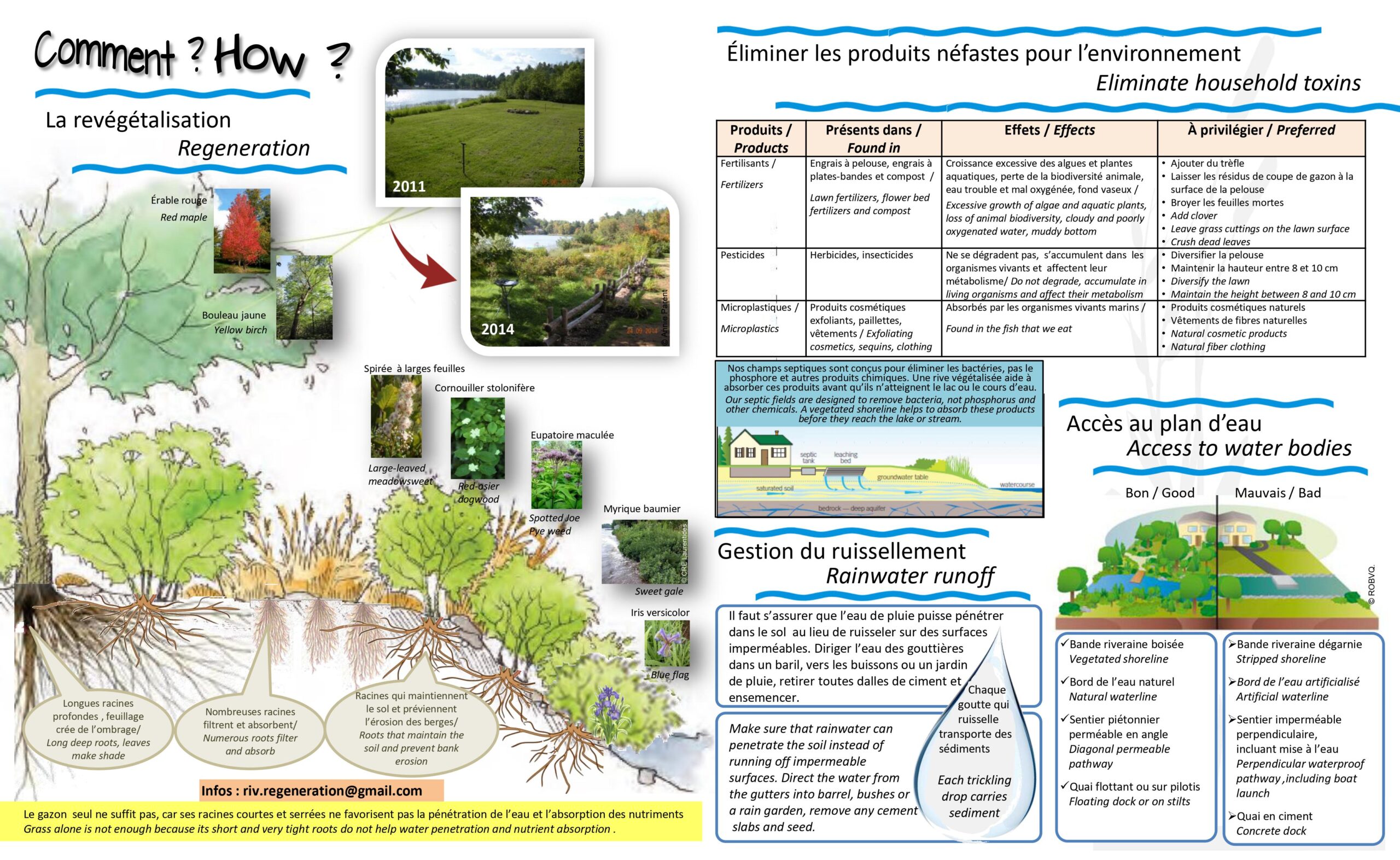 Workshops focus on shoreline protection, current regulations and what can be done to improve the shoreline and water quality of our rivers/lakes. Mitigating measures proposed will reduce the risk of floods and prevent erosion, bringing forth solutions to absorb water from precipitation, stabilize banks, contribute to aquatic health, act as a filter against pollution, and among other issues, absorb the nutrients that nourish blue-green algae as well as increase plant and animal diversity.