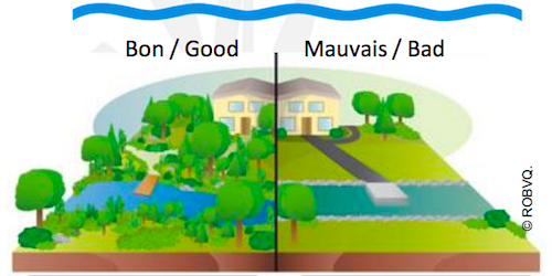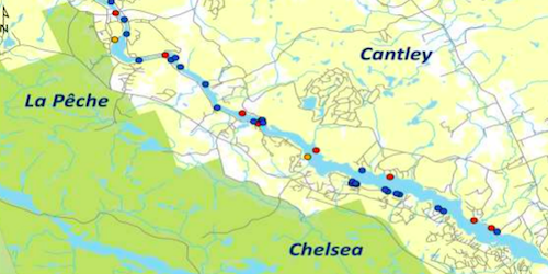 • Municipal by-laws in Chelsea, La Pêche (chapter 19), and Cantley require a 15 m buffer zone of native vegetation be maintained, yet most of the shoreline lacks that important buffer. A 5 m wide cleared strip is allowed for river access.