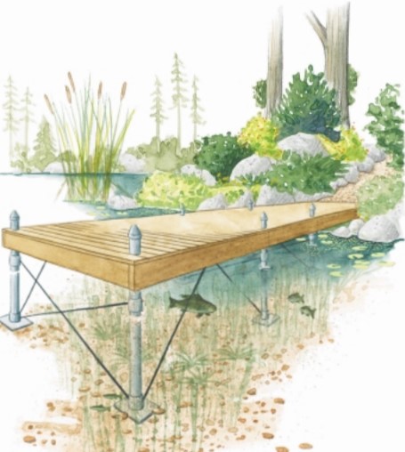 The narrow band of earth known as the shoreline is one of the most ecologically sensitive pieces of the planet most of us are likely to encounter, and any successful shoreline structure pays homage to its surroundings. When building a dock, consider all of the following, dock shape, dock size, dock materials, hardware, and anchors. For example, because it can leach chemicals into the environment, pressure-treated wood is banned for waterfront use in some areas of the country and, in all cases, construction should take place well back from the shoreline, with the finished dock being left to thoroughly dry and “age” before being launched into the water.